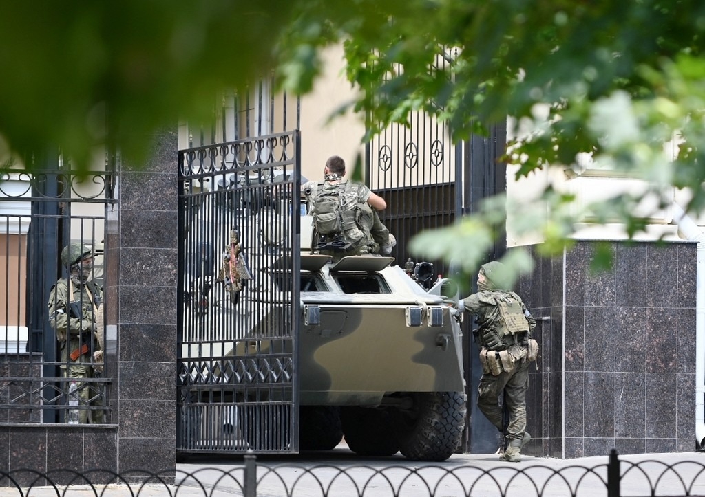 Бойцы ЧВК «Вагнер» на автомобилях и военной технике начали покидать территорию у штаба Южного военного округа в Ростове-на-Дону. Из нее выехали четыре пикапа ЧВК, но танки и тяжелая техника пока остаются на месте. Местные жители засняли на телефоны военную технику, которая начала покидать город.