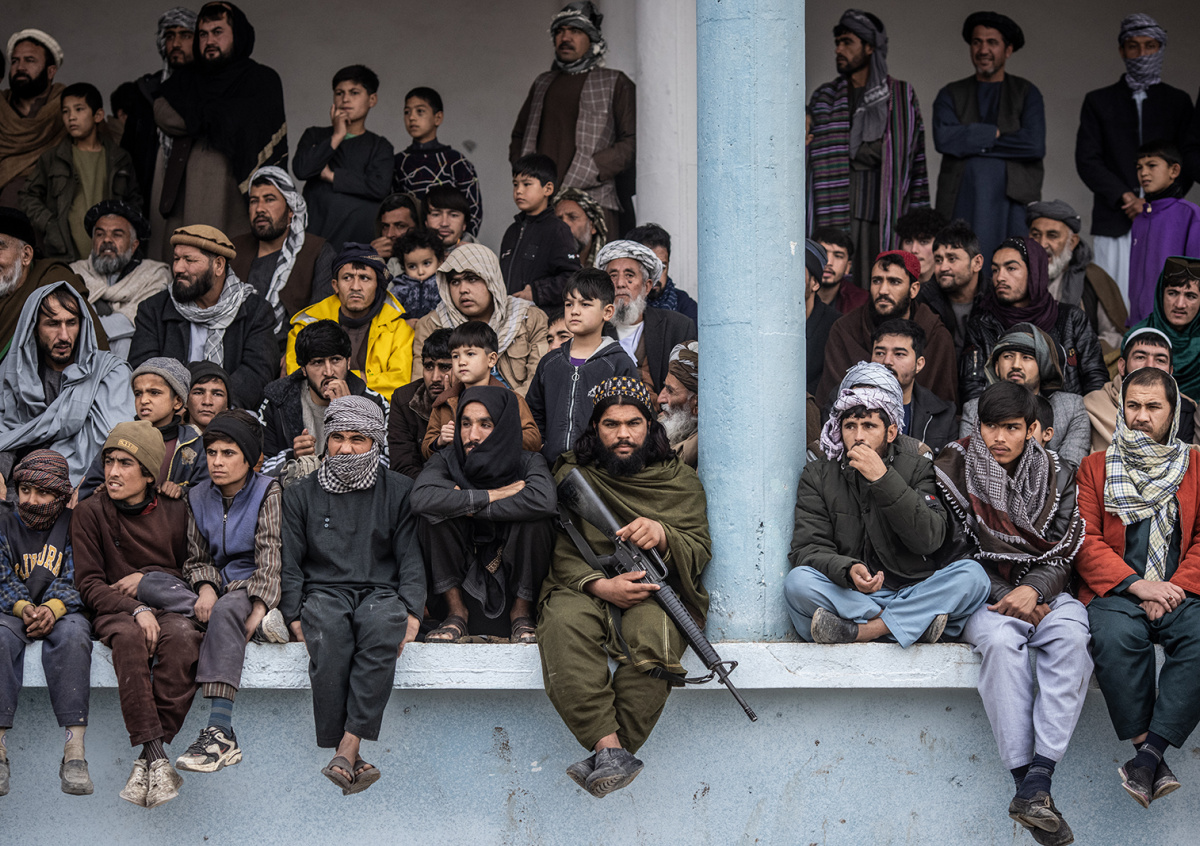 Член «Талибана» с винтовкой М-16 сидит среди зрителей, наблюдающих за игрой в бузкаши Член «Талибана» с винтовкой М-16 сидит среди зрителей, наблюдающих за игрой в бузкаши Фото: Oliver Weiken/dpa/Global Look Press