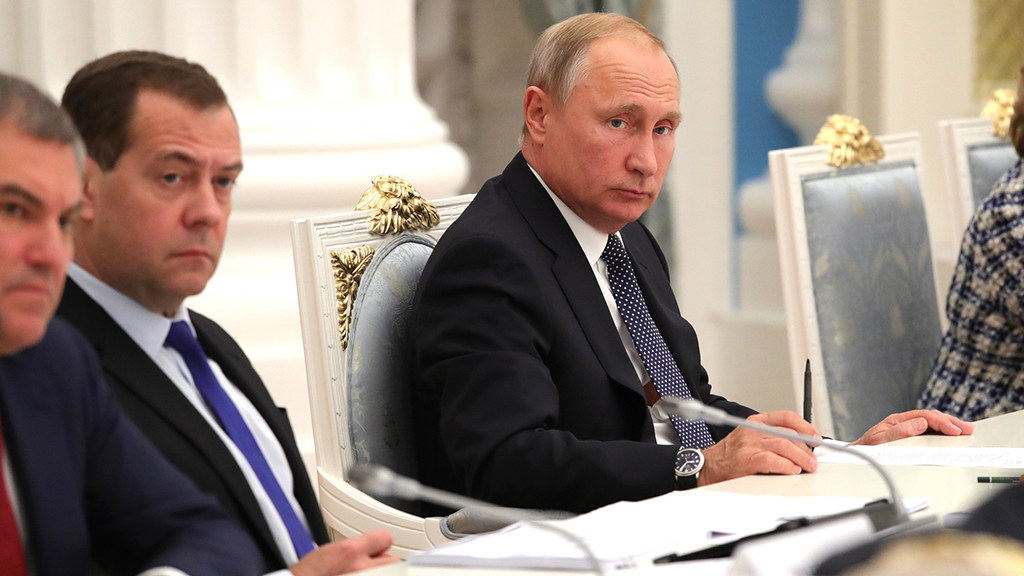 Владимир Путин и Дмитрий Медведев на заседании Совета по стратегическому развитию и нацпроектам Владимир Путин и Дмитрий Медведев на заседании Совета по стратегическому развитию и нацпроектам Фото: kremlin.ru
