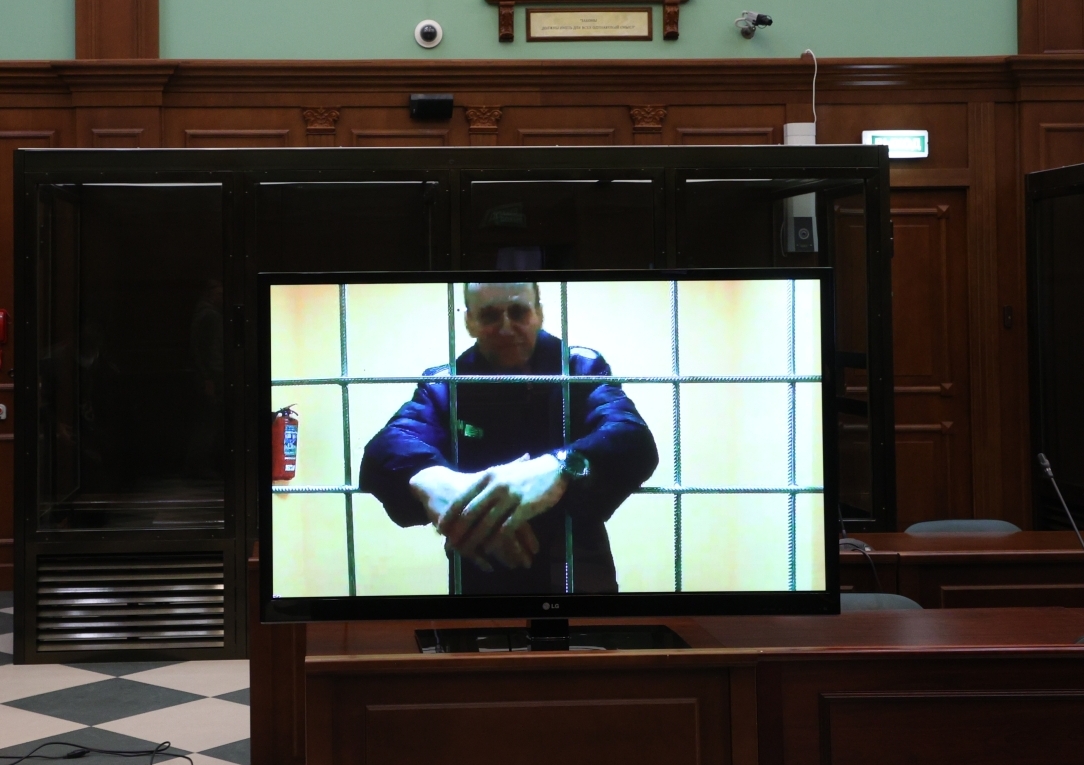 Алексей Навальный (на экране), отбывающий наказание в исправительной колонии Алексей Навальный (на экране), отбывающий наказание в исправительной колонии Фото: Артём Соболев/NEWS.ru