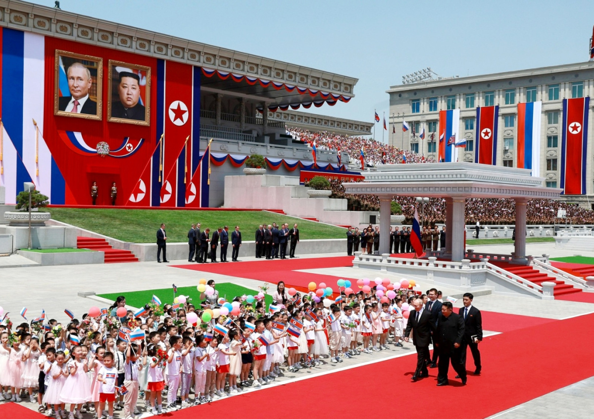 Церемония официальной встречи Владимира Путина председателем государственных дел Корейской Народно-Демократической Республики Ким Чен Ыном Церемония официальной встречи Владимира Путина председателем государственных дел Корейской Народно-Демократической Республики Ким Чен Ыном Фото: kremlin.ru/Владимир Смирнов, ТАСС