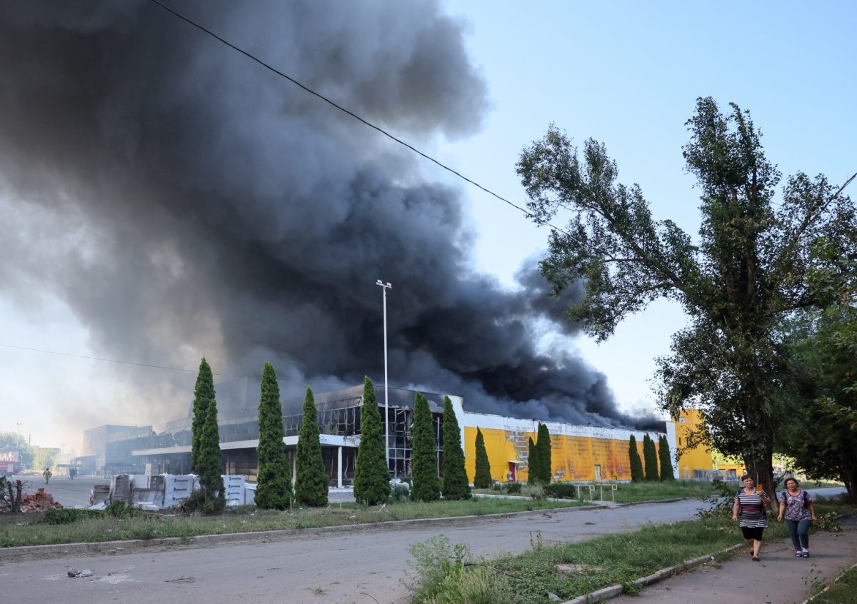 Донецк. Дым над торговым центром «Галактика» после обстрела со стороны ВСУ в Петровском районе Донецк. Дым над торговым центром «Галактика» после обстрела со стороны ВСУ в Петровском районе Фото: Дмитрий Ягодкин/ТАСС