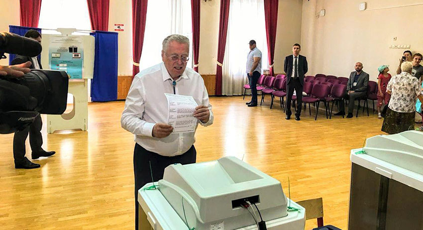 Лидер ЛДПР Владимир Жириновский проголосовал на выборах мэра Москвы. Он посетил избирательный участок 2714 в школе № 814 на улице Матвеевской.