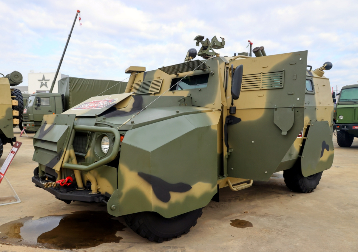 Военно-промышленная компания на форуме представила бронированный вариант известного российского военно-транспортного автомобиля «Тигр-М», который предназначен для охраны колонн боевой техники. В разработке новой модели использовался опыт эксплуатации машины в ходе боев в Сирии и в зоне СВО.
