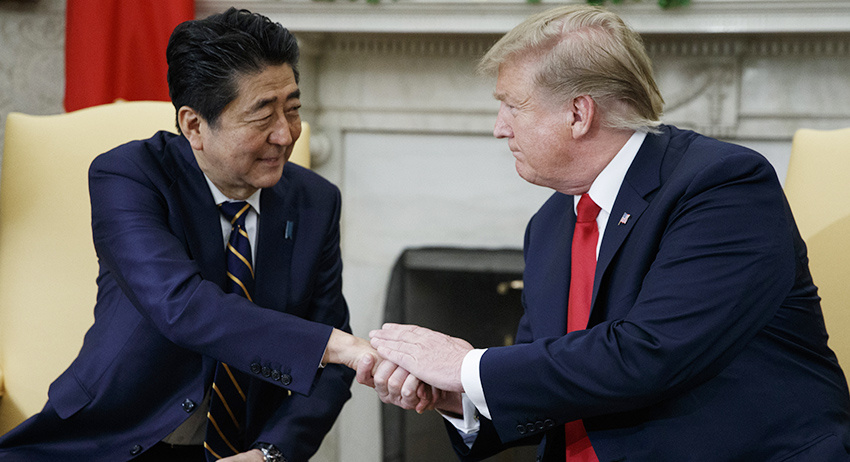 Председатель японского кабмина Синздо Абэ подарил американскому президенту Дональду Трампу запонки из жемчуга во время визита в Соединённые Штаты.