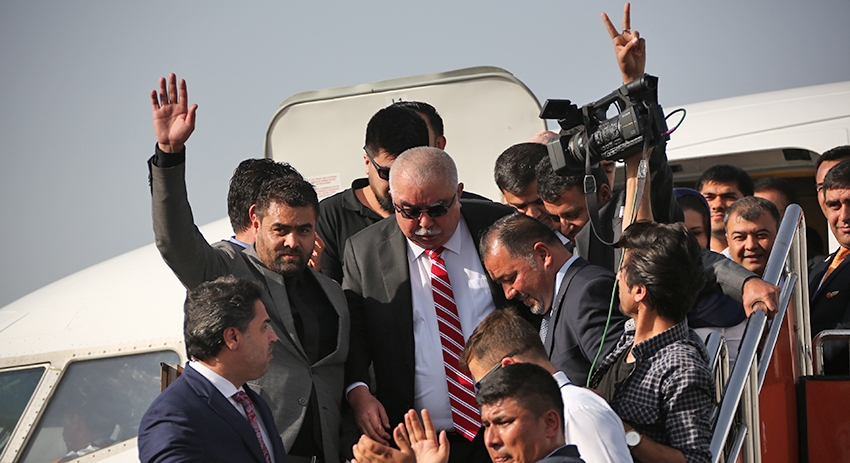 Возвращение вице-президента Афганистана из самоналоженного годового изгнания получилось в прямом смысле громким: во время отъезда кортежа из кабульского аэропорта смертник привёл в действие взрывное устройство. Жертвами стали 14 человек, более 50 ранены. Ответственность за теракт взяло на себя «Исламское государство» (запрещено в РФ). Скрытый в бронированном автомобиле генерал не пострадал и после из офиса обратился к своим сторонникам-узбекам.