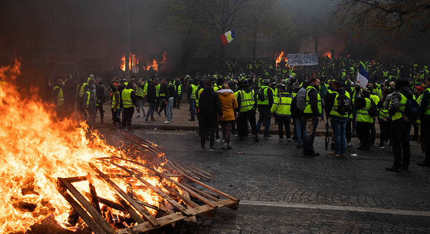Во Франции с 17 ноября проходят акции протеста против повышения цен на топливо. Участники акций в знак протеста надели жёлтые жилеты для автомобилистов. Власти рассматривают вопрос о введении чрезвычайного положения. Число пострадавших в Париже возросло до 110 человек из-за протеста.