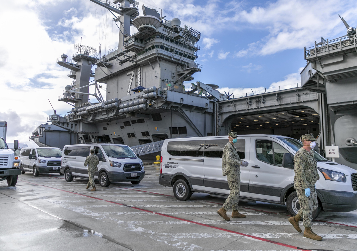 Все находящиеся на борту авианосца моряки прошли необходимые уроки по предотвращению и смягчению последствий заражения вирусом, а также практиковались в ношении масок.