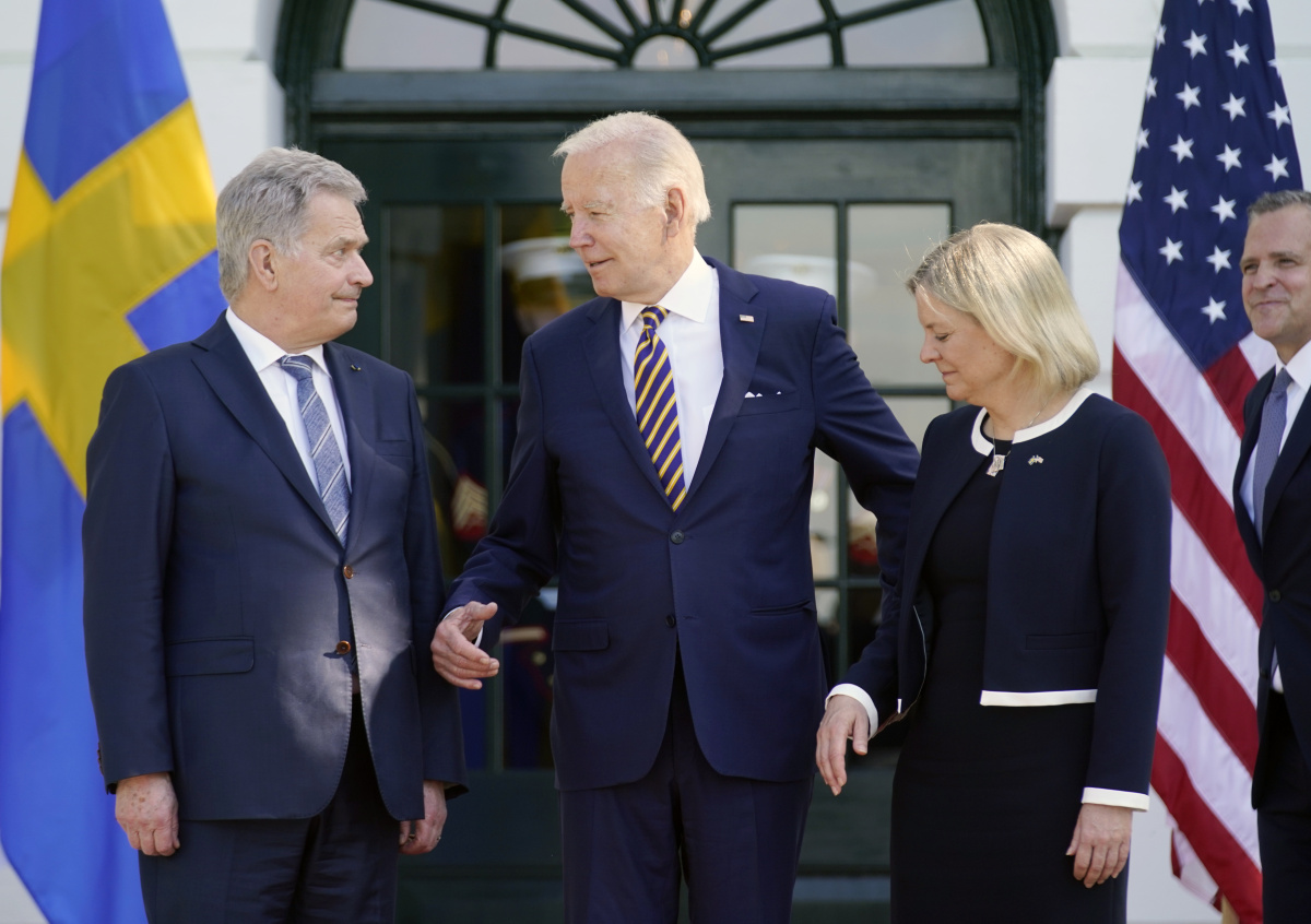 Президент США Джо Байден (в центре), премьер-министр Швеции Магдалена Андерссон (справа) и президент Финляндии Саули Ниинисте (слева) во время встречи в Вашингтоне Президент США Джо Байден (в центре), премьер-министр Швеции Магдалена Андерссон (справа) и президент Финляндии Саули Ниинисте (слева) во время встречи в Вашингтоне Фото: Andrew Harnik/AP/ТАСС