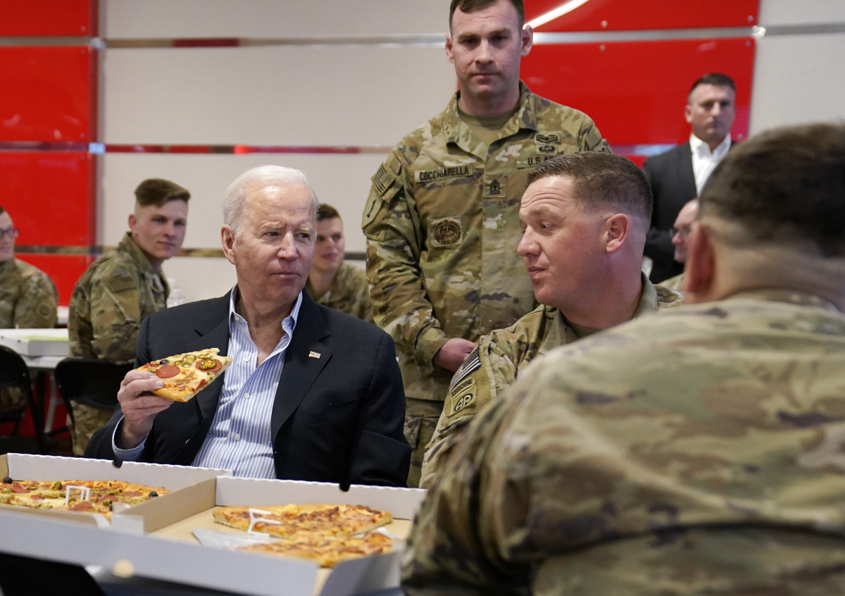 Байден поел пиццу с американскими солдатами в Польше