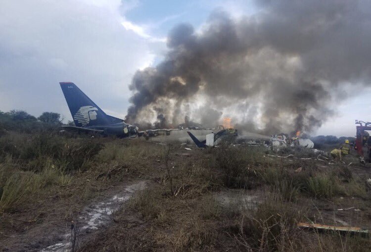 News from #Durango the accident happened during a thunderstorm, the airplane overruns and leave the airport crashed one mile away. Onboard 97 pax and 4 crew members. #PlaneCrash pic.twitter.com/hQPw0WL3vu