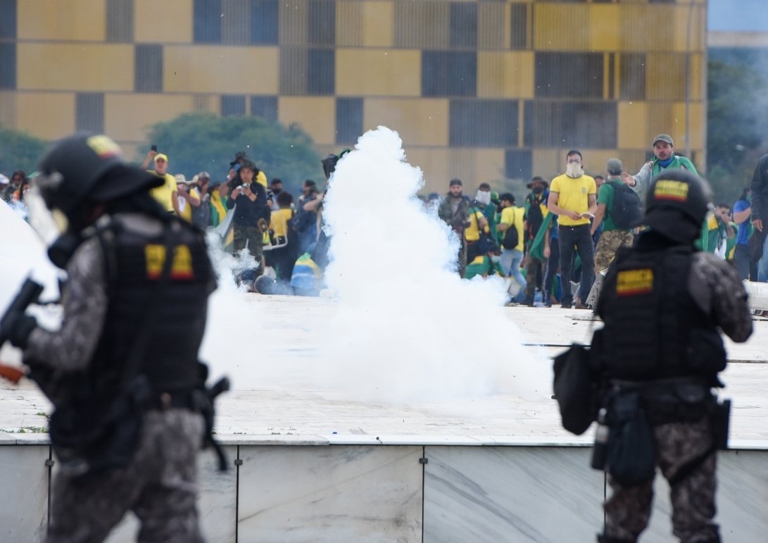 В минувшее воскресенье, 8 января, многотысячные толпы сторонников Болсонару прорывали полицейские кордоны, взбирались на крыши правительственных зданий, били стекла в окнах и подвернувшихся под руку репортеров. Все три главных госучреждения страны расположены на одной площади Трех властей, что придавало толпе ощущение единства и массовости — той массовости, которой сторонникам Болсонару чуть-чуть не хватило на избирательных участках 30 октября 2022 года.