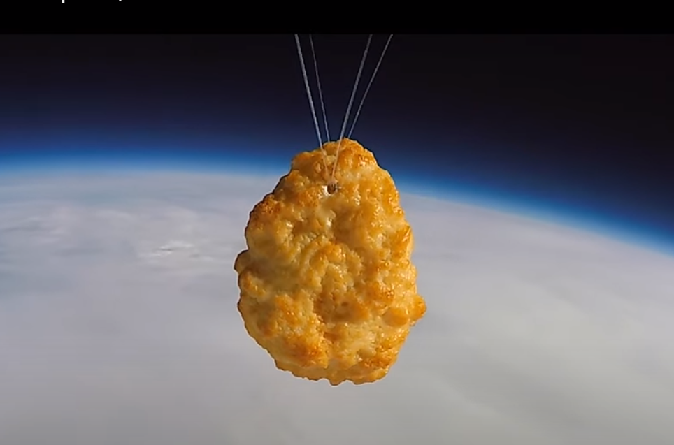 Как пишет издание Evening Standard, кусок обжаренного во фритюре куриного филе за два часа полёта взмыл на высоту более 33,5 километра над Землёй и выдержал там температуру минус 60 градусов Цельсия. Закуска затем вернулась обратно со скоростью 322 км/ч.