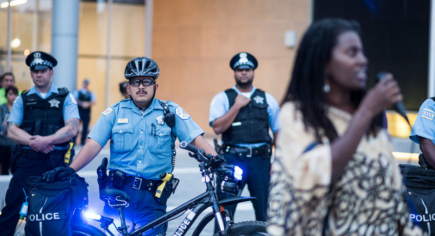Свою речь Трамп произнёс всего через несколько дней после того, как суд присяжных осудил белого полицейского из Чикаго Джейсона Вана Дайка. Его признали виновным в смерти чернокожего 17-летнего подростка Лакуана Макдональда. В 2014 году Дайк вместе с двумя сослуживцами встретил на шоссе подростка, который показался полицейским подозрительным. Без предупреждения и видимой опасности Дайк с расстояния нескольких метров открыл стрельбу и выпустил в Макдональда 16 пуль. После того как полиция распространила видео с места преступления, в Чикаго вспыхнули массовые акции протеста. После этого администрация города и американский Союз гражданских свобод заключили соглашение, согласно которому полицейские не имеют права останавливать и досматривать людей без весомых оснований.