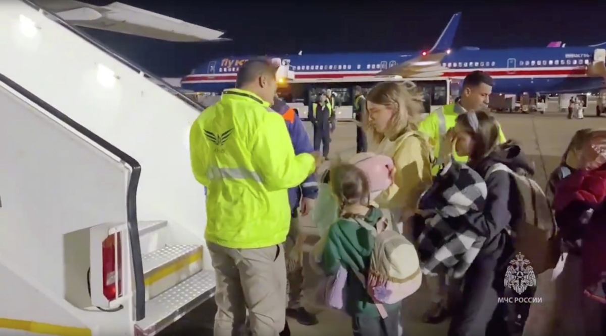 Спецборт Ил-76 МЧС России с российскими гражданами на борту, вывезенными из Израиля через Египет, в подмосковном аэропорту Жуковский