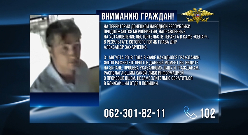 Полиция ДНР опубликовала фото мужчины, который может быть причастен к убийству лидера самопровозглашённой республики Александра Захарченко. Полицейские нашли подтверждение тому, что этот мужчина находился в кафе «Сепар», когда там произошёл взрыв.