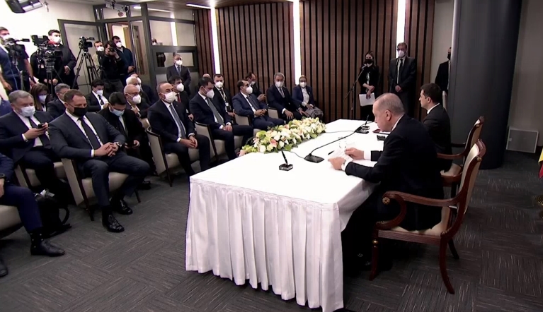 Заявление было опубликовано после встречи двух лидеров, которая проходила в рамках девятого заседания турецко-украинского Совета сотрудничества высшего уровня, председателями на котором стали главы государств. На пресс-конференции после неё Эрдоган также заявил, что Анкара не признаёт присоединение Крыма к России и поддерживает стратегию «Крымская платформа», которая должна стать отправной точкой для возвращения полуострова в состав Украины.