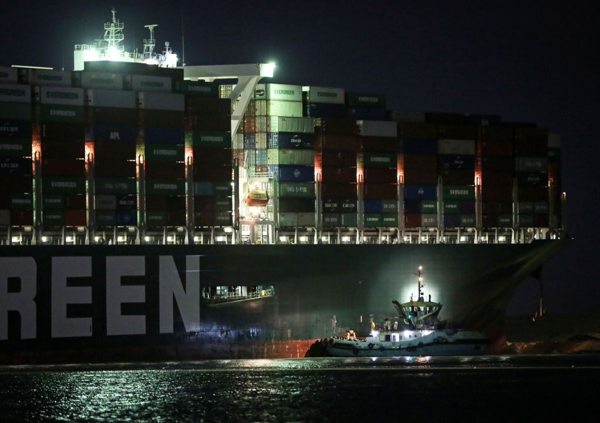 К контейнеровозу Ever Given, который сел на мель в Суэцком канале, направляются ещё два буксира.