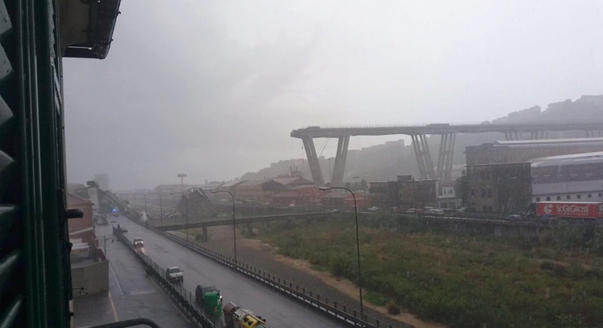 Автомобильный мост, по которому проходит автомагистраль А10, обрушился в городе Генуя (Италия). В социальных сетях уже появились первые снимки с места происшествия.