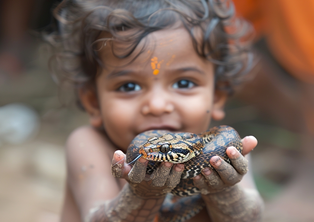 В Индии годовалый мальчик по имени Рианш укусил змею, после чего животное погибло, передает Daily Mail. Инцидент произошел в одной из деревень штата Бихар, он засунул в рот черную змею, пока мать ненадолго отвлеклась.
