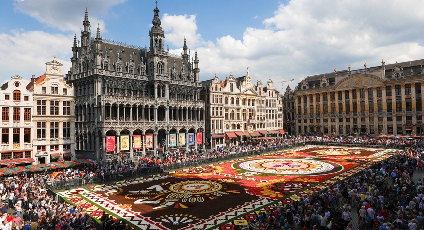 Две полуобнажённые активистки бельгийской организации Collectif Anonyme устроили акцию цветочном ковре в центре Брюсселя. Они выступили против содержания детей мигрантов в закрытых центрах.