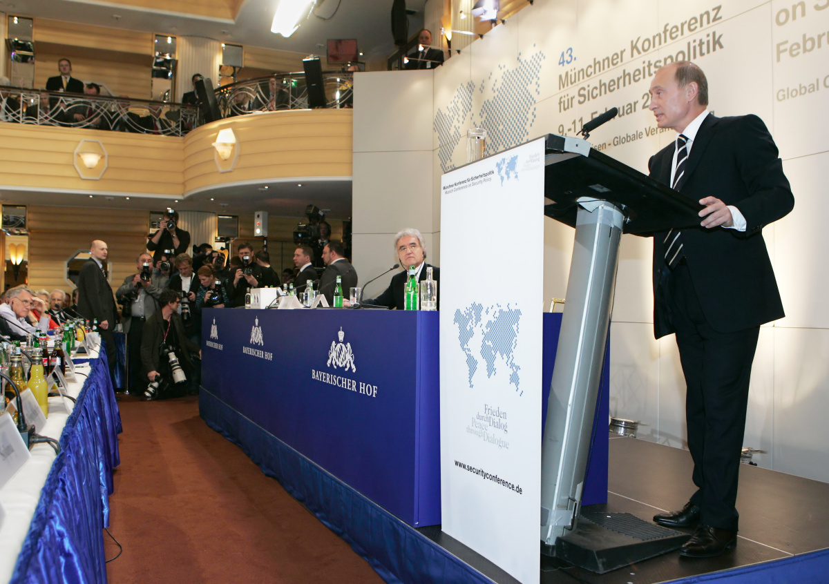 10 февраля 2007 года президент России Владимир Путин принял участие в Мюнхенской конференции по вопросам политики безопасности. Его выступление на форуме назвали поворотным моментом в российской внешней политике. В своей Мюнхенской речи Путин открыто изложил позицию Москвы по таким ключевым проблемам, как расширение НАТО, многополярность мира и реформа ООН.