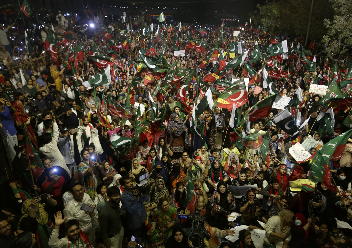 Процедура назначения Шарифа проходила в экстремальных условиях, когда в Пакистане вспыхнули массовые протесты в поддержку свергнутого премьера. Десятки тысяч людей накануне вышли на антиправительственные митинги в разных городах, в том числе Лахоре и Пешаваре, чтобы «вернуть» Хана. Протестующие скандировали антиамериканские лозунги, что означало их согласие с громкими тезисами ушедшего премьера, сделавшего акцент на иностранном характере затеянного против него «переворота». В числе чиновных он называл США, недовольных, по его оценкам, независимой внешней политикой Исламской Республики.
