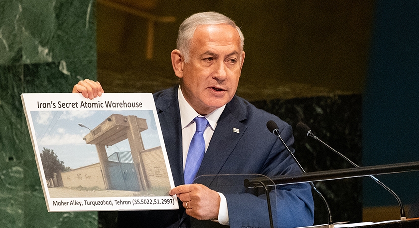 Премьер-министр Израиля Биньямин Нетаньяху заявил на 73-й сессии Генеральной Ассамблеи ООН о секретном складе в Тегенране. Возмущённый глава МИД Ирана Мохаммад Джавад Зариф в ответ заявил, что Израиль тайно разрабатывает ядерное оружие.