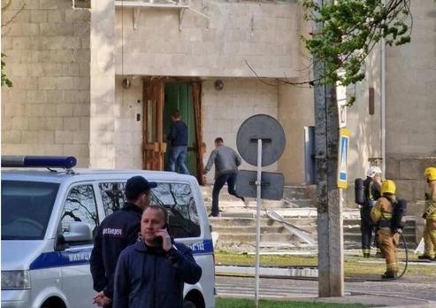 У Министерства госбезопасности в Тирасполе 25 апреля прогремели несколько взрывов. На данный момент улицы Карла Маркса и Манойлова перекрыты, на месте работают оперативные службы города: пожарные, скорая помощь и газовая служба. Информации о пострадавших пока нет, но на месте происшествия были найдены предметы, похожие на части боеприпасов, предположительно, тубус от противотанкового гранатомёта. У домов напротив министерства выбило стёкла.