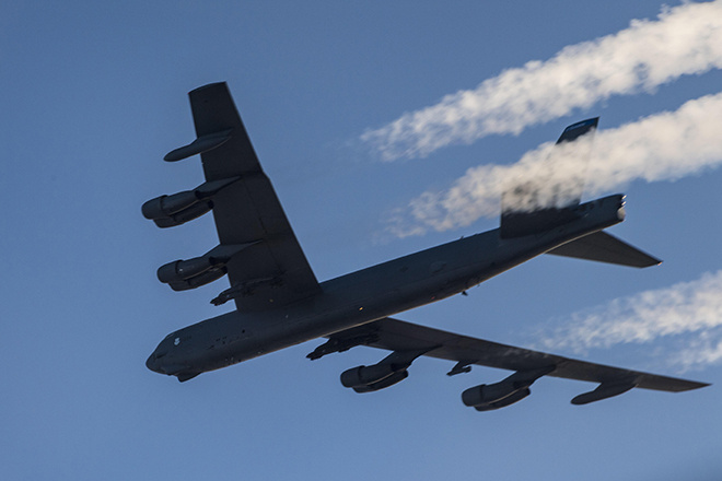 В Национальном центре управления обороной (НЦУО) РФ заявили, что экипажи российских истребителей приблизились к бомбардировщику на безопасное расстояние. Они идентифицировали его как В-52Н ВВС США и не допустили нарушения границы.
