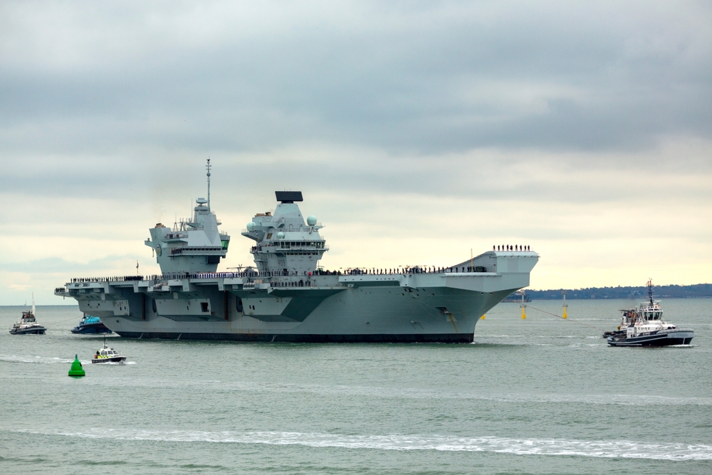 Авианосец вышел из Портсмута 27 августа, вскоре у него возникли проблемы — вероятно, с правым гребным валом, что вынудило корабль встать на якорь неподалеку от острова Уайт. Причины неисправности устанавливаются.
