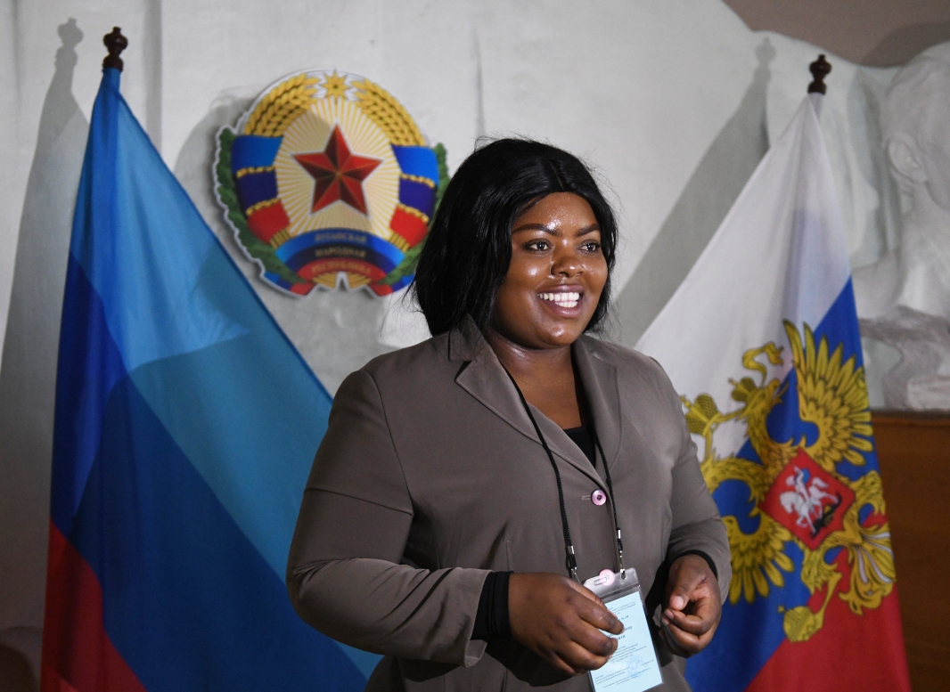 В президиуме за длинным столом сидят главные гости. Индийская женщина в сари — это Пурнима Ананд, президент Международного форума БРИКС. Рядом мужчина в кепке с красной звездой — колумбийский журналист Уильям Парра, раньше работавший с RT. Следом человек в инвалидной коляске, дипломат и основатель Международной дипломатической обсерватории Вито Граттани. Между ними глава подкомитета Молодежной лиги правящего в ЮАР Африканского национального конгресса Кулекани Мондли Скосана. Свою речь он начал, как положено, с апартеида и Нельсона Манделы, а затем перешел к комплиментам в адрес референдумов.