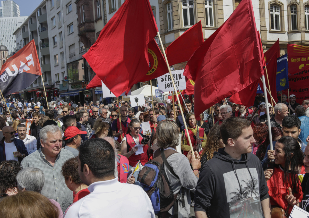 Сторонники левых сил в Берлине приняли участие в первомайском шествии.