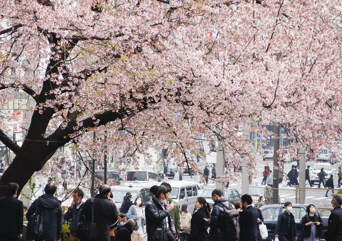 Магнит для туристов: в Японии зацвела первая сакура