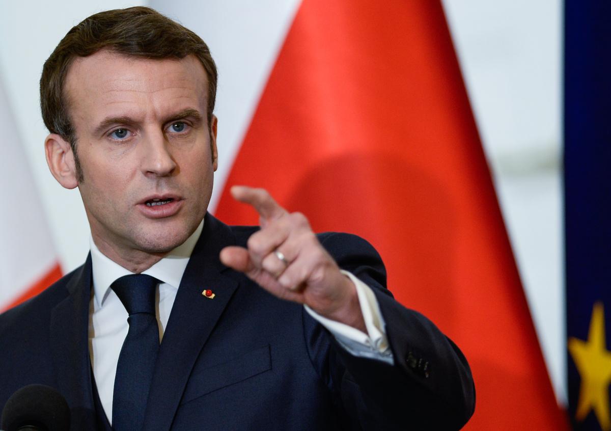 Во время пресс-конференции с польским президентом Анджеем Дудой и премьер-министром Матеушом Моравецким он заявил, что европейским странам необходимо показать свою твёрдость в отношениях с Россией. Президент Франции подчеркнул, что диалог с Москвой необходим для урегулирования ситуации на юго-востоке Украины.