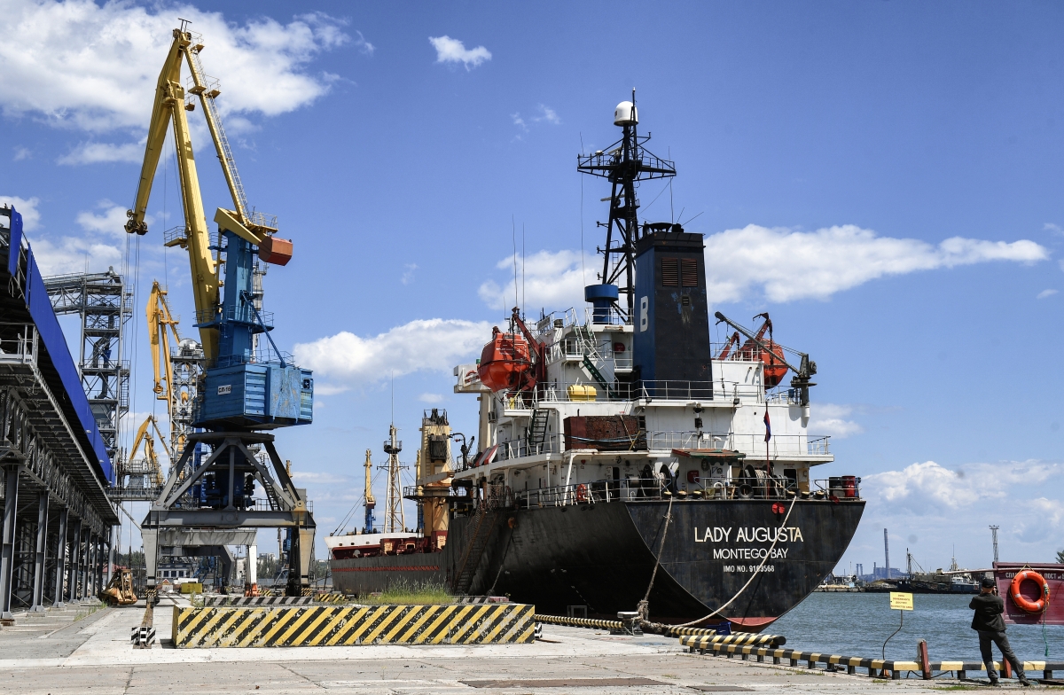 Сухогруз Lady Augusta в морском торговом порту в Мариуполе Сухогруз Lady Augusta в морском торговом порту в Мариуполе Фото: Константин Михальчевский/РИА Новости