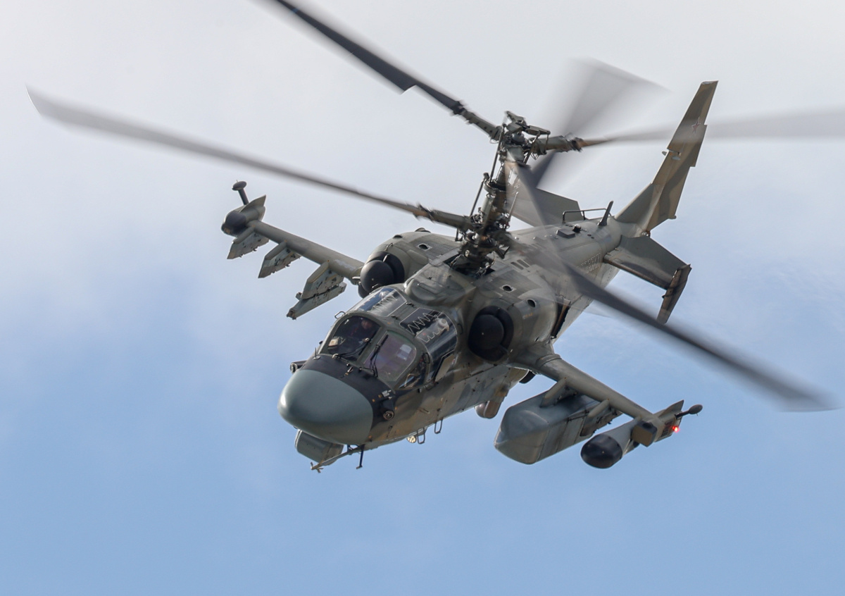 Министерство обороны России опубликовало кадры нанесения авиационных ударов экипажами вертолётов Ка-52 по военным объектам и технике на Украине. В Telegram-канале оборонного ведомства отметили, что лётчики запускали средства авиационного поражения парами с расстояния в пять километров. В результате, согласно официальным данным, были уничтожены пункт управления и бронированная техника подразделений ВСУ.