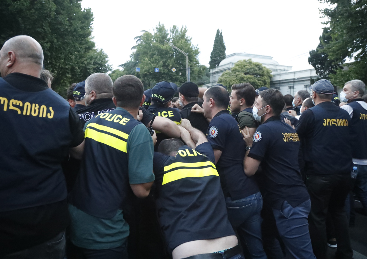 На митинге за отставку премьера Грузии начались стычки