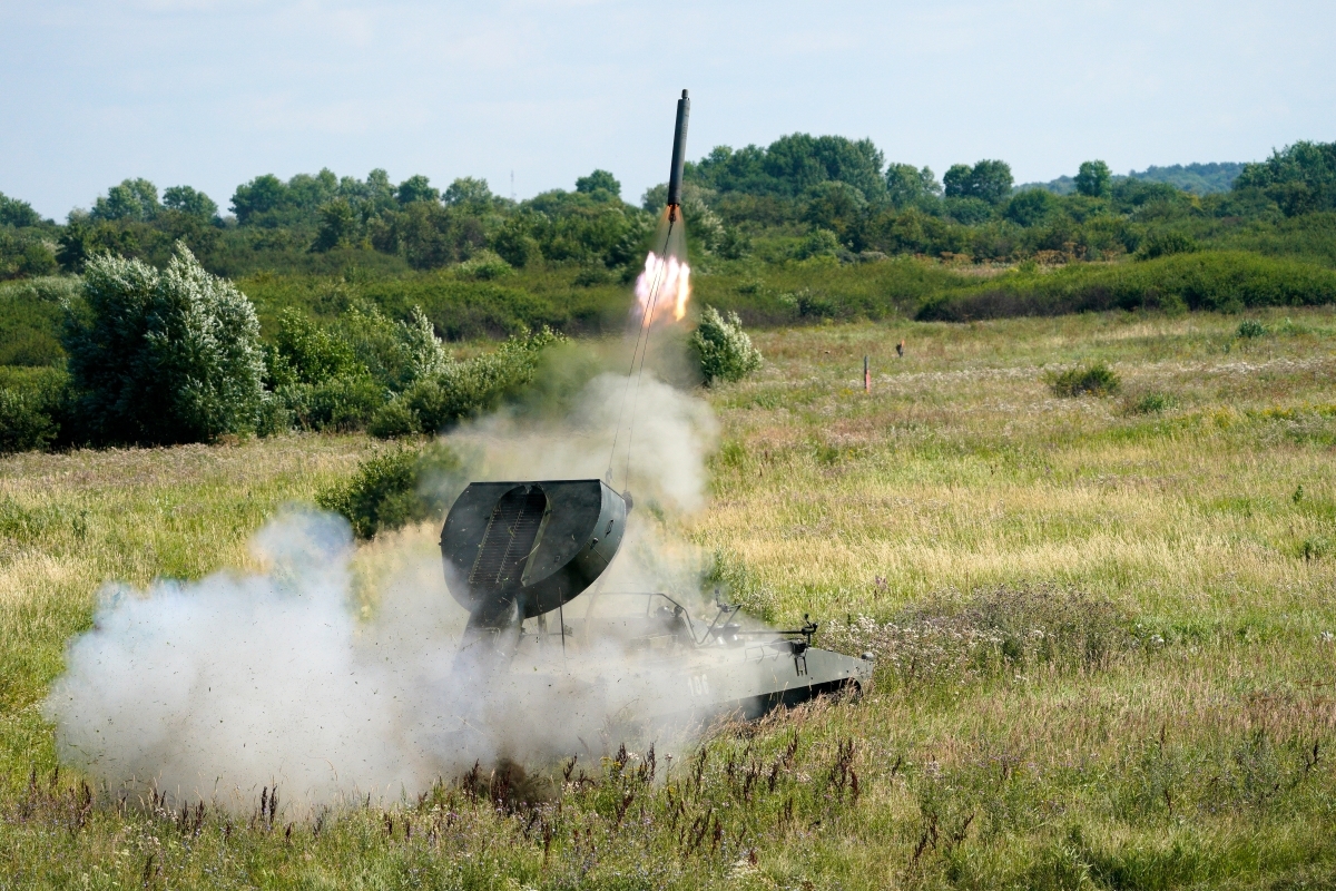 УР-77 — это советская разработка, в России она прошла модернизацию, мы ее тоже используем в качестве прохода по минным полям. По необходимости также используется в качестве боевого средства, потому что в этом случае летят сотни килограммов взрывчатки, называется еще «Змей Горыныч». Это эффективное средство для разминирования минных полей. Применяется обеими сторонами, но у нас она более эффективная и отработанная. Радиус действия направлен на довольно узкий коридор, несколько сотен метров, а за счет детонации взрывчатки взрываются мины, — сказал Дандыкин.
