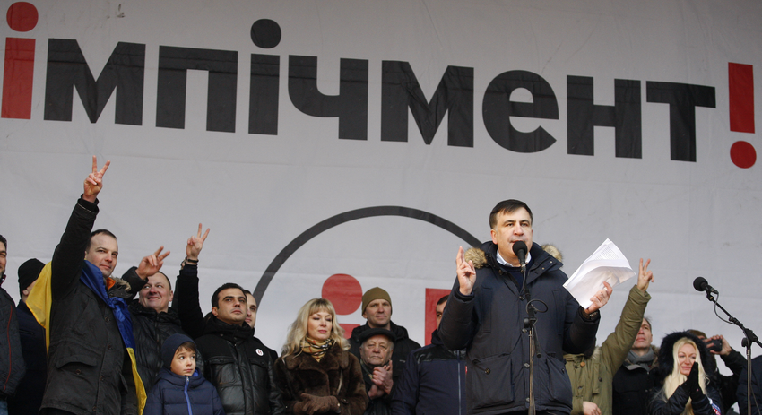Сегодня сторонники партии «Движение новых сил», которую возглавляет экс-президент Грузии Михаил Саакашвили, пришли в центр Киева, чтобы провести «Марш за будущее». Участники акции призывали к отставке президента Украины Петра Порошенко.