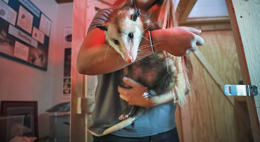 Находящиеся рядом молодые люди попытались оттянуть животное от поедания снеков. Наевшись, опоссум сбежал со стола и опрокинул тарелку. Поведение голодного опоссума окружающие встретили бурным смехом.