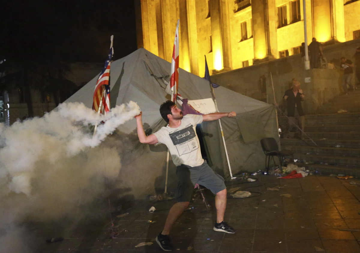 Спустя несколько часов после разгона демонстрантов протестующие ворвались в офис «Грузинской мечты» и устроили погром. Уточняется, что демонстранты сожгли обнаруженные в офисе флаги с эмблемой партии. Силовые меры — применение слезоточивого газа и стрельба резиновыми пулями — подняли ставки и всё-таки дали демонстрантам сохранить протестный потенциал. Но о его реальной силе судить сложно: оппозиция пытается использовать накал страстей для того, чтобы по максимуму выжать уступки от действующей власти. Отсюда попытки «раздёргать» спецназ и спровоцировать их на силовой ответ, а оппозиционные каналы помогают с «картинкой», снимая репортаж на довольно узком проспекте Руставели так, что создаётся видимость массовости народного гнева.
