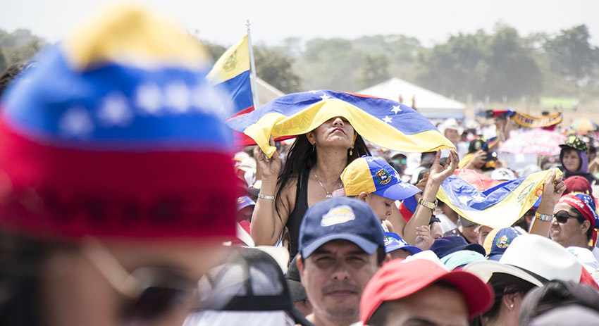 В Каракасе продолжает накаляться обстановка, связанная с нежеланием властей страны разрешить ввоз гуманитарной помощи. Десятки тысяч сторонников оппозиции выходят на улицы венесуэльской столицы и других городов.