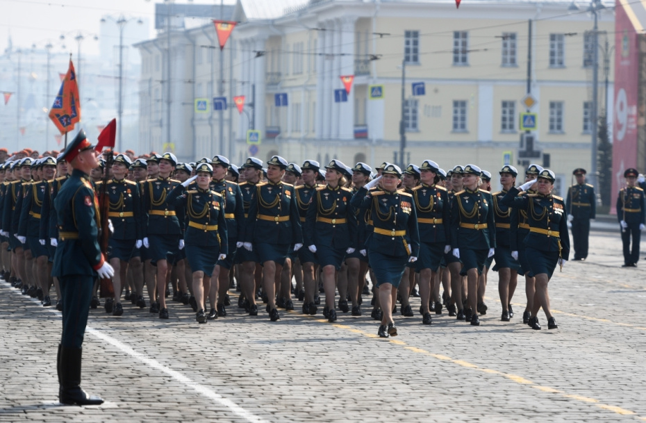 Участники военного парада, посвященного 78-й годовщине победы в Великой Отечественной войне, в Екатеринбурге
