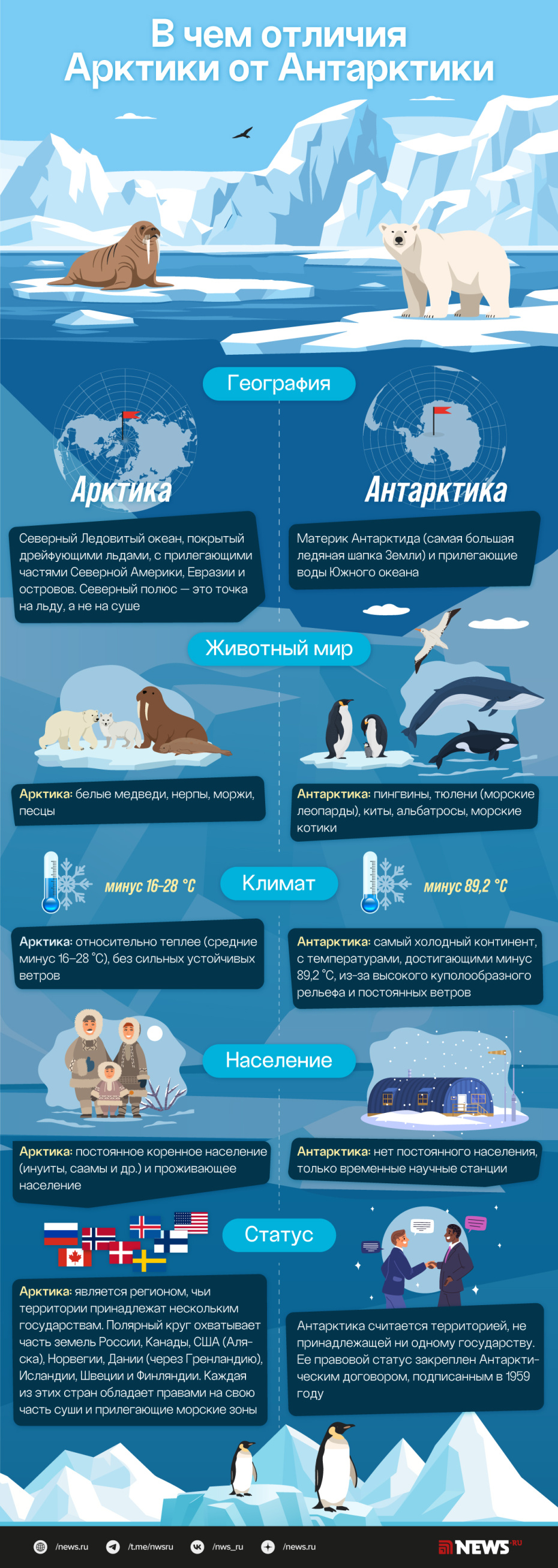 Подробнее о том, чем отличается Арктика от Антарктики, — в инфографике NEWS.ru.