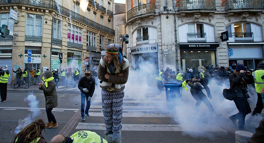 Французская полиция начала разгонять участников акции «жёлтых жилетов», протестующих на площади Звезды, рядом с Триумфальной аркой. В сторону толпы правоохранительные органы распылили слезоточивый газ.