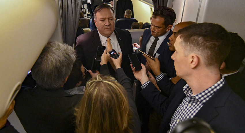 «Мы ликвидировали 99% халифата. С этого необходимо начинать каждый новостной материал. Правильно? Все согласны?» — сказал Помпео журналистам на борту самолёта, летевшего в Иорданию.