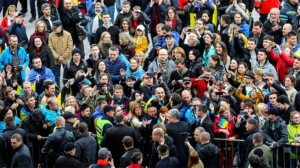 Президент Украины Пётр Порошенко пробирается к сцене Владимира Зеленского Президент Украины Пётр Порошенко пробирается к сцене Владимира Зеленского Фото: twitter.com/poroshenko