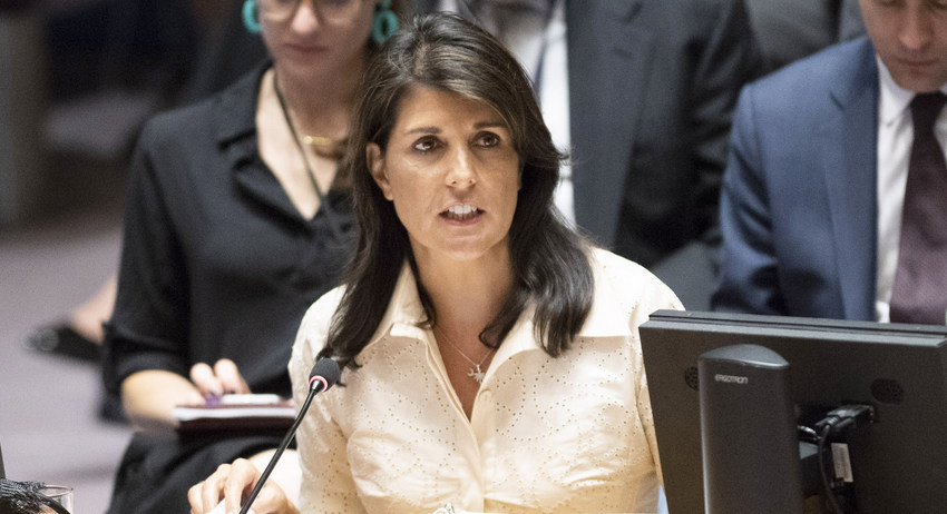 "Nikki Haley, you can't hide. You're enabling genocide."