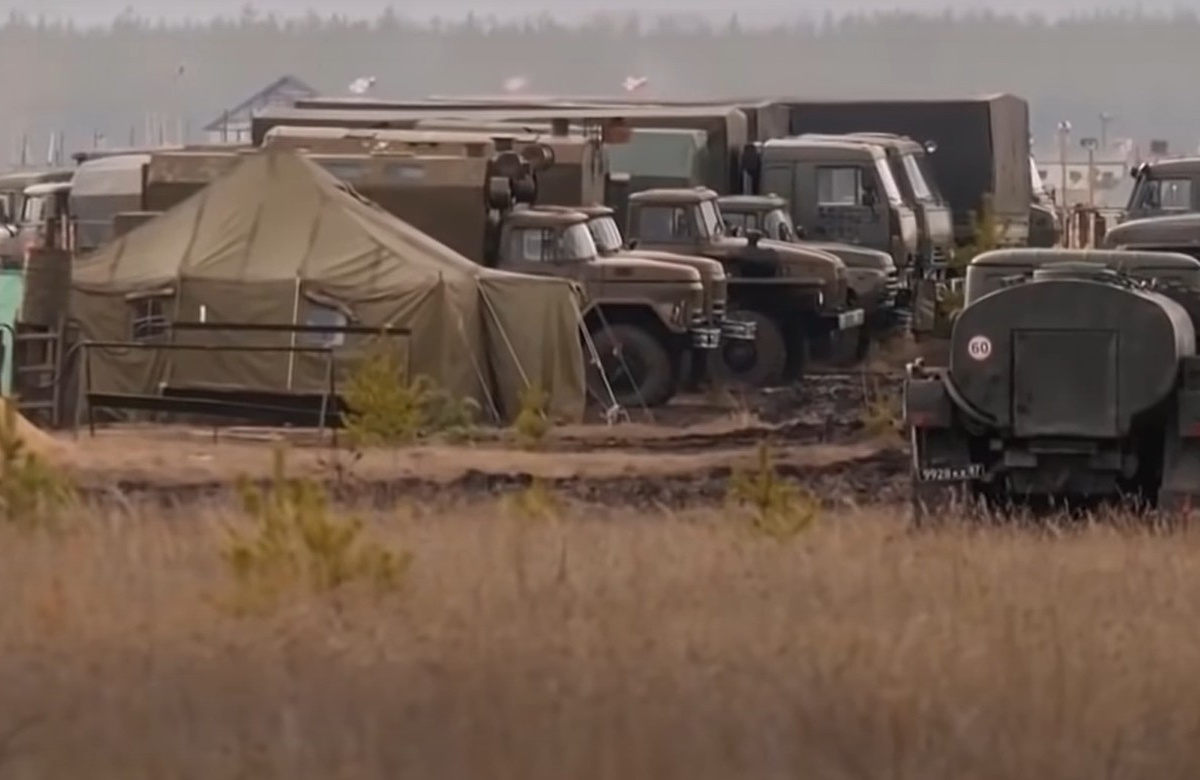 На железнодорожной станции Масловка к югу от российского города Воронежа есть небольшой военный городок, несколько грузовиков и палаток. Поляна изрезана колеями из-за постоянной разгрузки военной техники в последние недели, — сообщает телеканал.